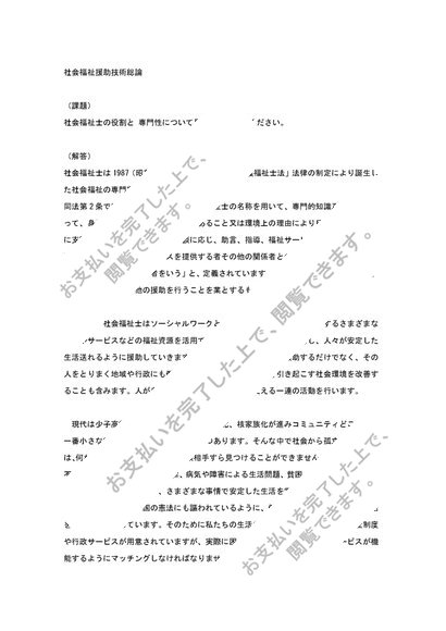 *社会福祉援助技術総論1単位 役割と専門性について具体的に論じよ