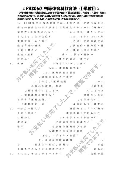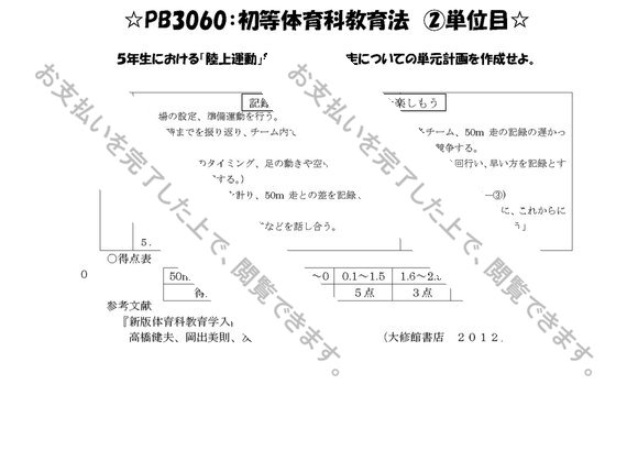 《明星大学通信》PB3060:初等体育科教育法 1単位目+2単位目★2016年度 一発合格レポートセット