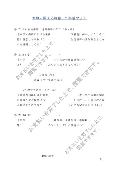 【お得!】【佛教大学】教職に関する科目 5科目セット 2016年度提出【レポート】