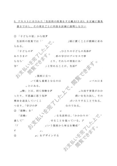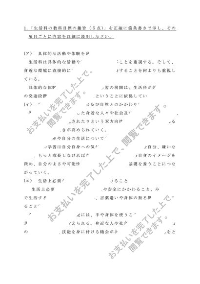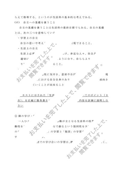 【2022年度】佛教大学 S0619 生活科教育法 科目最終試験 6題セット 合格済み 80点
