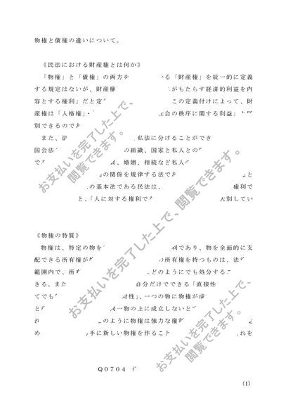 Q0704 レポート 法律学概論 第1設題