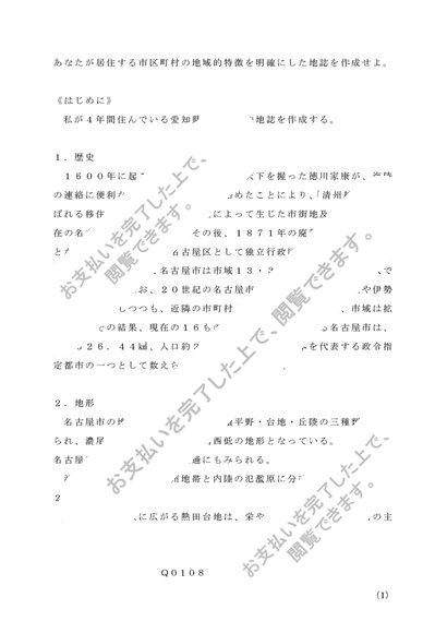 Q0108 レポート 地誌学 第1設題