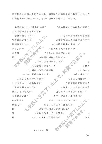 Z1104 レポート 教育社会学 第1設題
