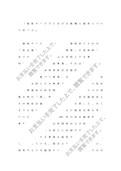 福祉サービスにおける組織と経営について述べよ。 A評価