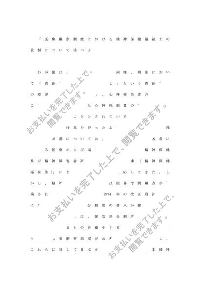 医療観察制度における精神保健福祉士の役割について述べよ。 A評価