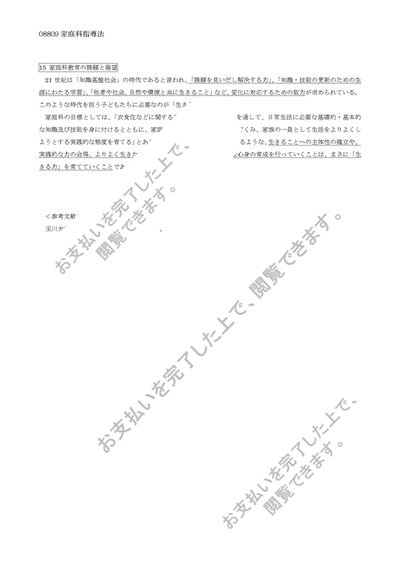 玉川大学 試験対策用まとめ【家庭科指導法】