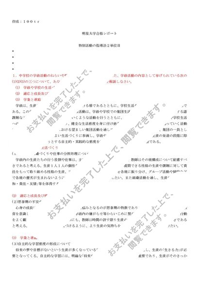 【2017明星合格レポート】特別活動の指導法2単位目