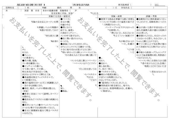 基礎看護学 実習記録【安全安楽に手浴、足浴を行い、爽快感を得られる】