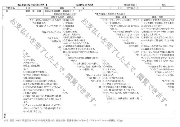 基礎看護学 実習記録【患者の状態に合わせた全身清拭を行い、身体の清潔と爽快感を得られる】