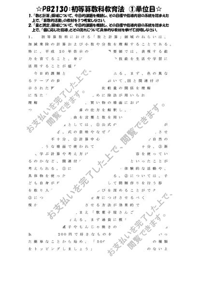《明星大学通信》PB2130:初等算数科教育法 1単位目★2017年度 一発合格レポート