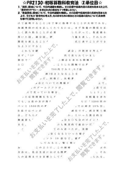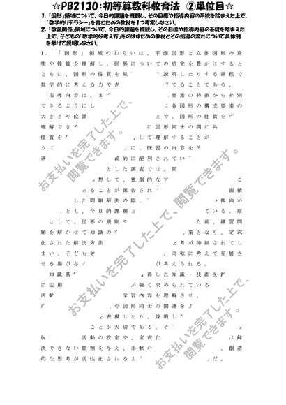 《明星大学通信》PB2130:初等算数科教育法 2単位目★2017年度 一発合格レポート