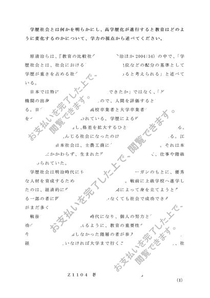 Z1104 教育社会学1 レポート A判定