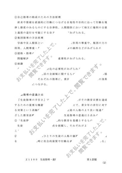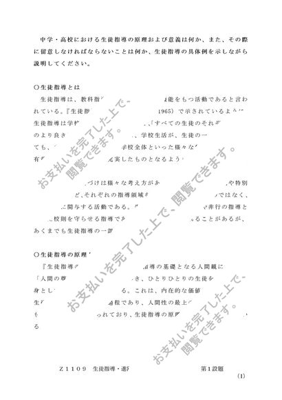 Z1109 生徒指導・進路指導の研究 レポート A判定
