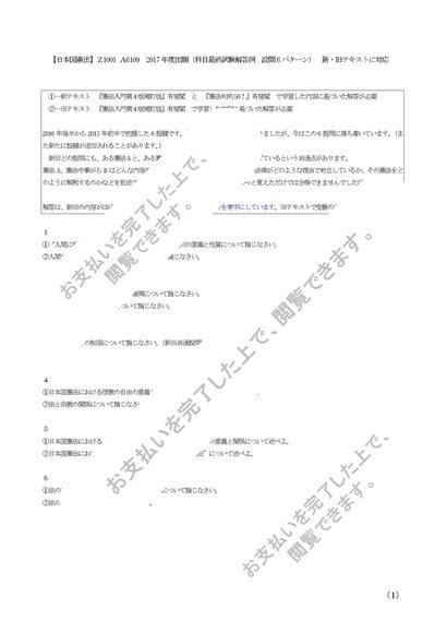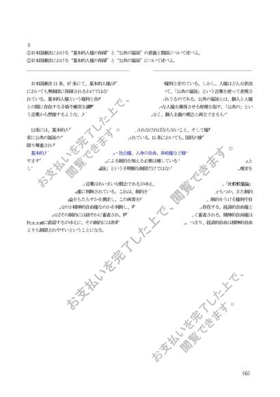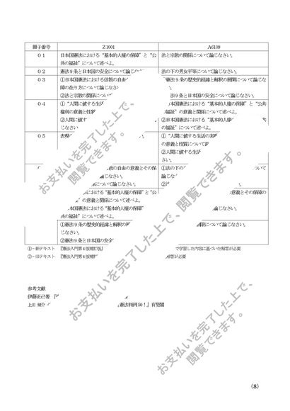 2019年度対応【日本国憲法】Z1001 A6109 科目最終試験 解答例 設問6パターン 新・旧テキストに対応