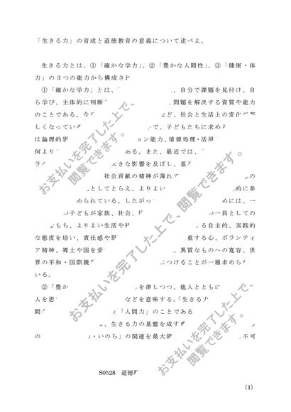 佛教大学 レポート 最新 2017年度 S9528 道徳教育の基礎