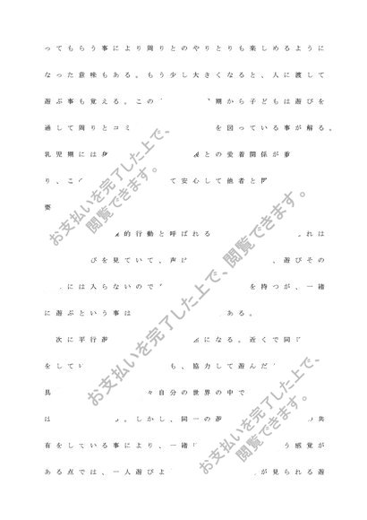 発達心理学 乳幼児期の遊びの発達について述べ、遊びが人格形成や社会性の発達に果たす役割を論じなさい。