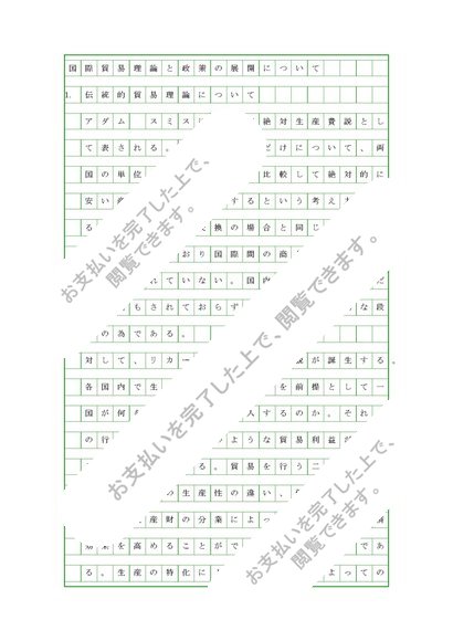 国際経済論レポート分冊1、合格レポート