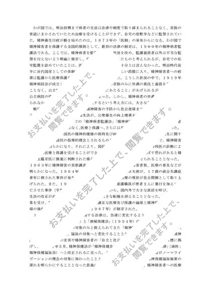 精神保健福祉法制定までの経緯に触れ、精神保健福祉法の意義・目的、今後の課題