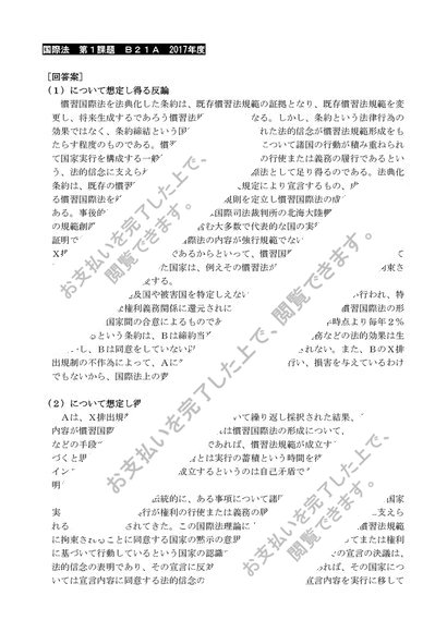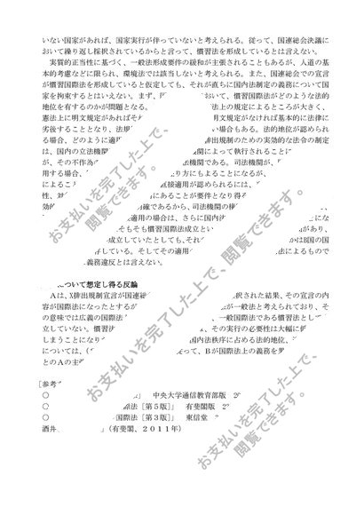 中央大学法学部通信教育課程 国際法 2017年度第1課題 合格レポート(B評価)