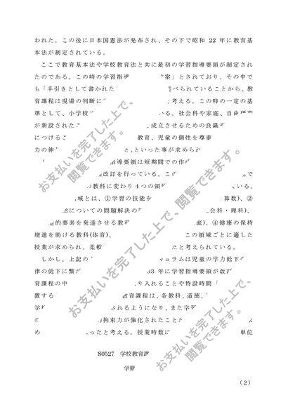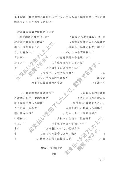 2019年度 佛教大学 S0527 学校教育課程論 レポート A判定