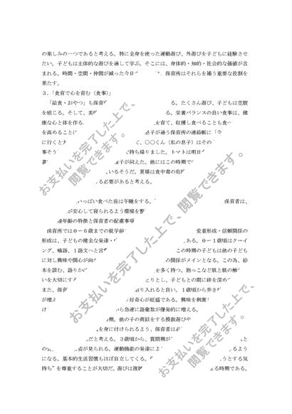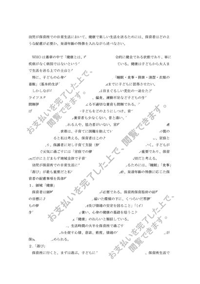 評価A 保育内容(健康)「幼児が保育所での日常生活において、健康で楽しい生活を送るためには、保育者はどのような配慮が必要か、発達年齢の特徴を入れながら述べなさい。」