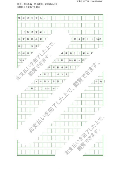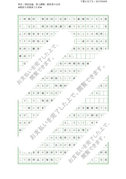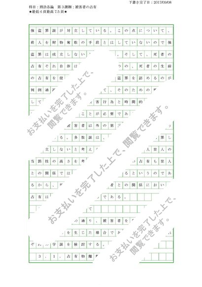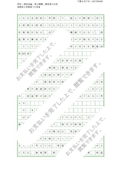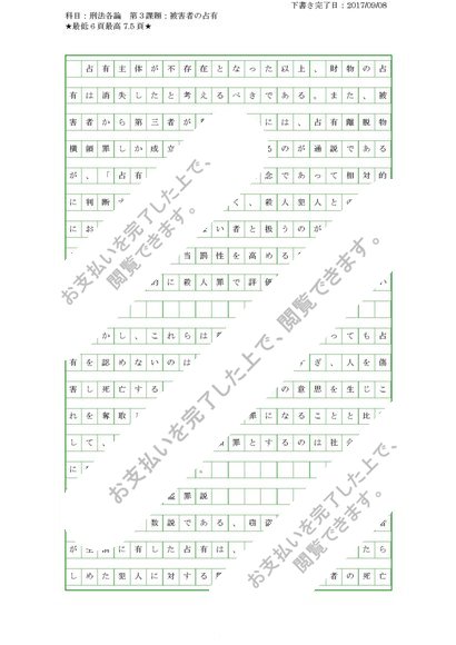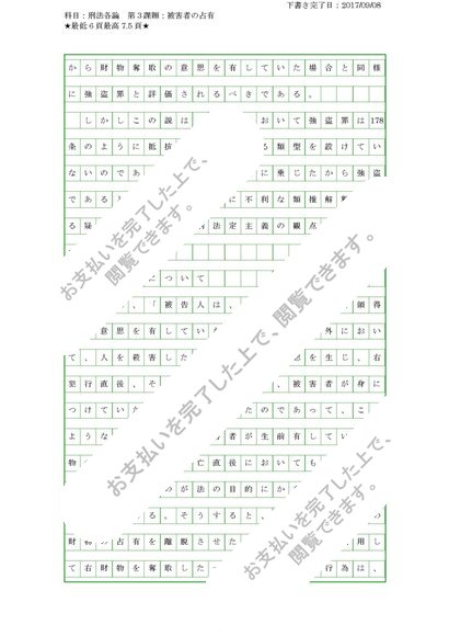 中央大学 2017年度 通信教育部 刑法各論 第3課題 被害者の占有 A評価