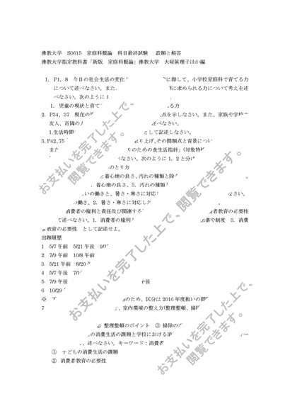 2019年度 佛教大学 S0615 家庭科概論 科目最終試験問題と解答 92点合格済み 出題履歴付き