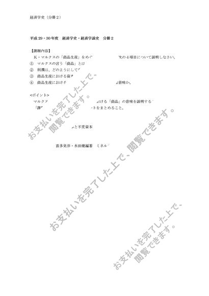 日大通信 平成29・30年度 経済学史・経済学説史 分冊2 合格レポート