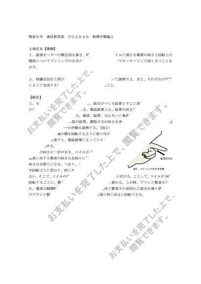 2024 明星大学 PG2020 物理学概論2 2単位目 合格レポート