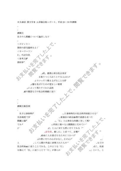 日大通信 漢文学Ⅱ A評価合格レポート、平成29・30年課題