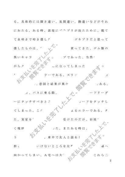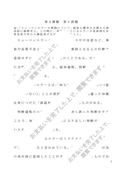 聖徳大学 認知心理学 課題2「ヒューマンエラーの原因について体系的に説明し、対象としているエラーの具体例を挙げ論述せよ」