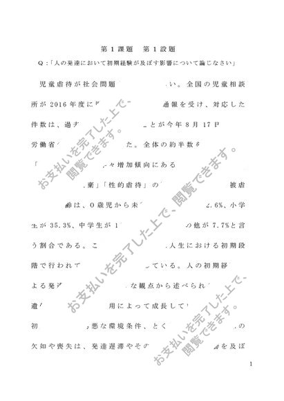聖徳大学 発達心理学1課題1「人の発達において初期経験が及ぼす影響について論じなさい」
