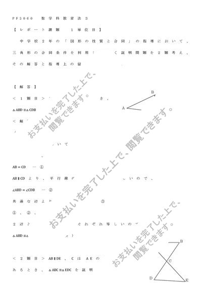 2024 明星大学 PF3060 数学科教育法3 1単位目 合格レポート