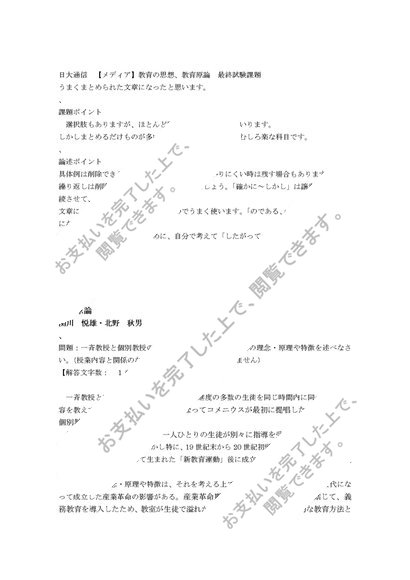 日大通信 教育原論M/教育の思想M最終試験「メディア授業」2023~26年度 最終試験課題