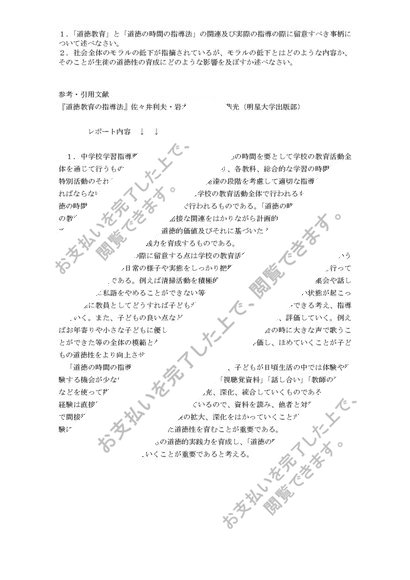 【明星大学】【道徳教育の指導法 1単位目】【合格レポート】