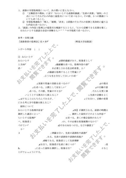 【明星大学】【道徳教育の指導法 2単位目】【合格レポート】