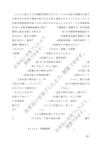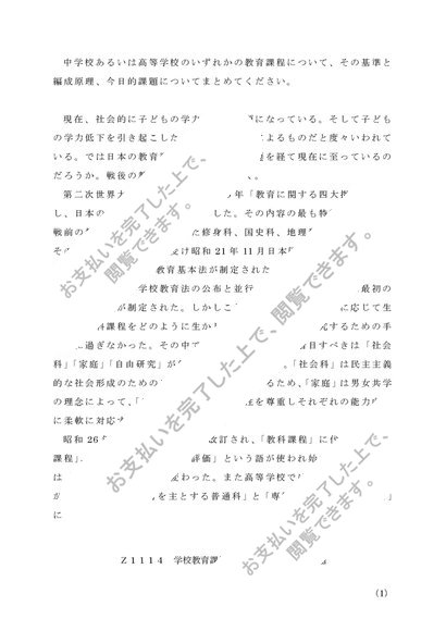 Z1114 学校教育課程論(中・高) 第1設題 B判定