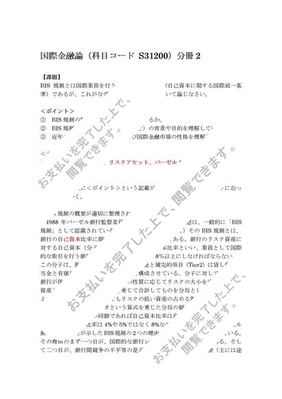 平成29~30年、日大通信、国際金融論(科目コード S31200)分冊2、合格レポート