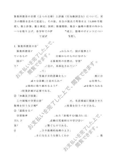 《佛教大学 小学校教諭》 2科目レポートセット:S0618算数科教育法【2017年・A評価】S0611数学概論【2017年・A評価】