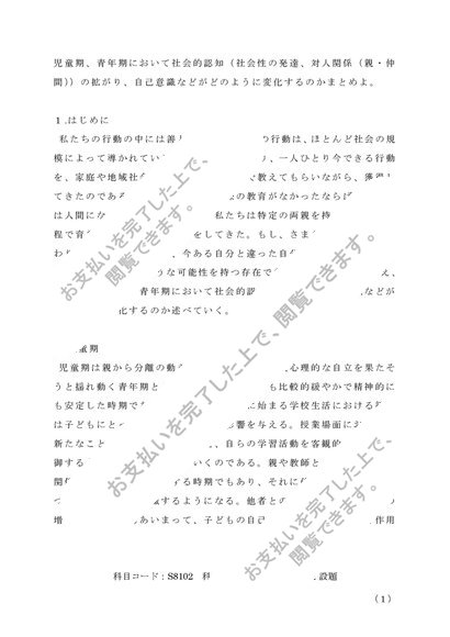2017年度 S8102 教育心理学1 リポート A評価 佛教大学