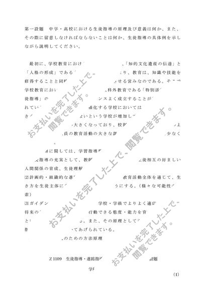 佛教大学 Z1109 生徒指導・進路指導の研究(中・高) 第一設題 レポート