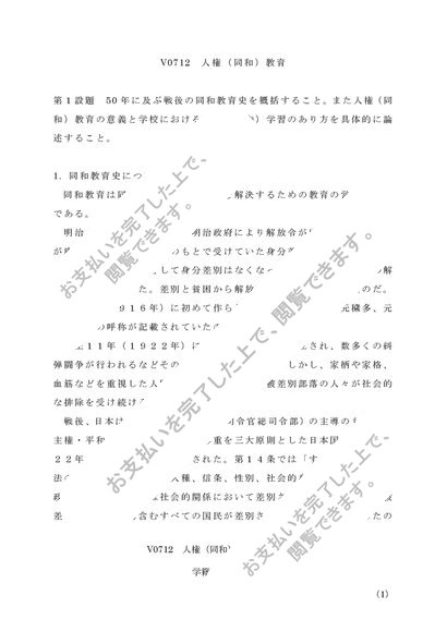 佛教大学 V0712 人権(同和)教育 第1設題 レポート