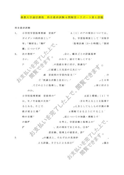 S0620 家庭科教育法 2018年 リポート&科目最終試験 6設問解答 セット(合格済)