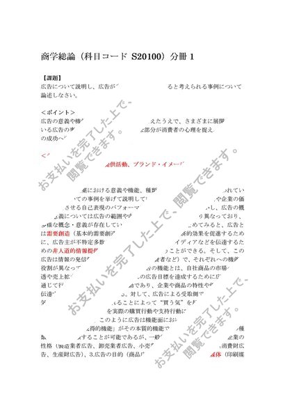 平成29~30年、日大通信、商学総論(科目コード S20100)分冊1、合格レポート
