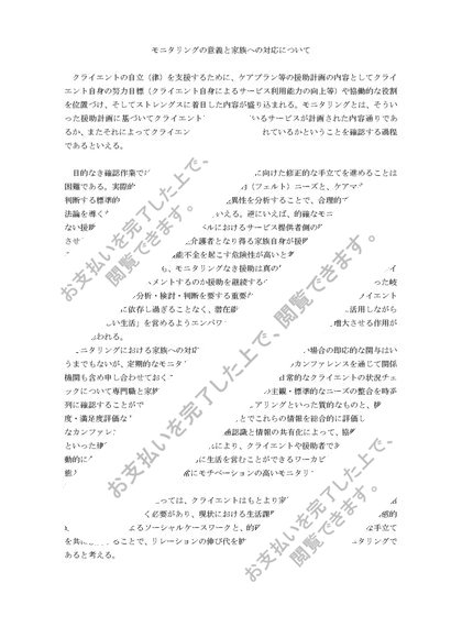 モニタリングの意義と、モニタリングにおける家族へのソーシャルワーカーの対応について述べなさい