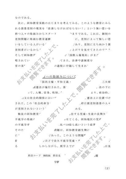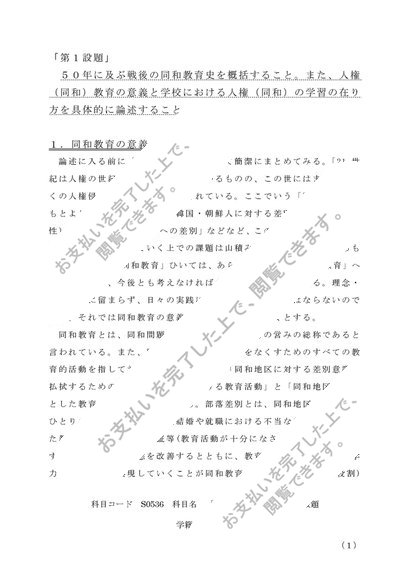 S0536 人権(同和)教育(2単位)1設題