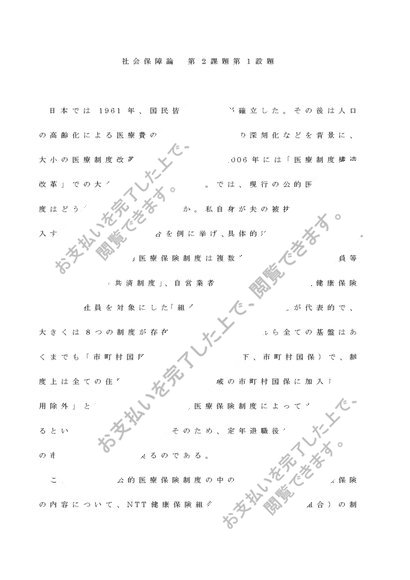 聖徳大学 日本の年金制度の内容について(社会保障論Ⅰ)評価:B