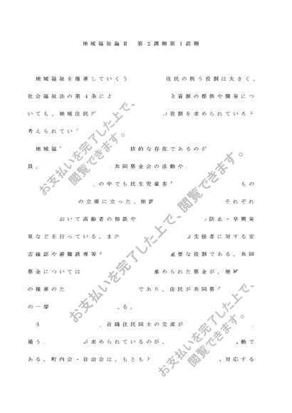 聖徳大学 地域福祉の推進における地域住民の役割について(地域福祉論Ⅱ)評価:A