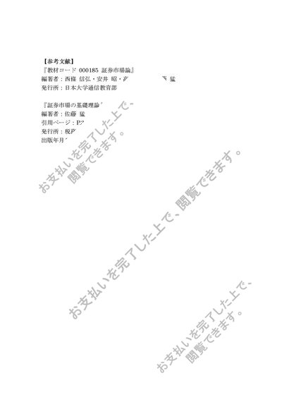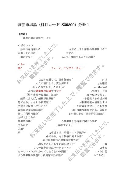 平成29~30年、日大通信、証券市場論(科目コード S30800)分冊1、合格レポート
