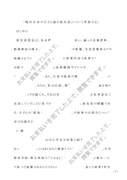 現代日本の子ども達の食生活について考察する
